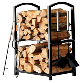 Modern endüstriyel stil yakacak odun Log tutucu kapalı açık kereste depolama raf siyah demir şömine setleri ve aksesuarları ile